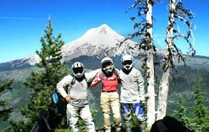 Brian, Lisa, and David in front of Mount Hood.On the other side of town we jumped on Valentino Rossi Road, enjoying it for quite some time before turning onto Bryan Smith Road where there are majestic views of Mt. Hood and plenty of photo ops. Finally we hit Highway 26 and took that north to Highway 35 before heading into the Hood River County Fairgrounds—the staging area for the festivities.