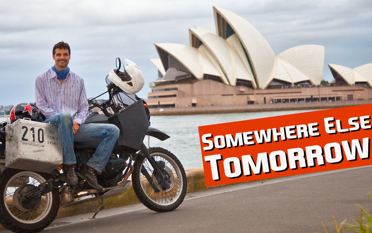 I roped a buddy whose bank account exactly matched mine into going with me. All we’d have to do was work our way around the world. That’s when “2-1-0” was born: Two wheels, One world, Zero money.